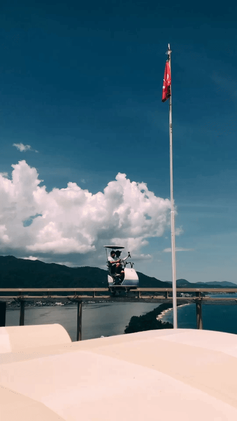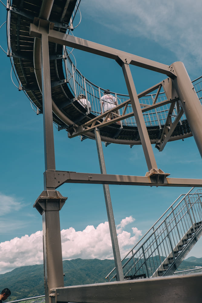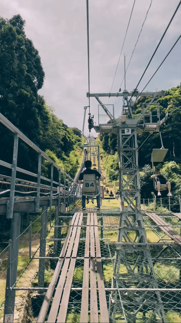 아마노하시다테 뷰랜드라고도 불리는 이곳에는 놀이공원도 작게 운영되고 있었어요. 하늘 위로 자전거를 타고 가는 걸 보고 이건 타보고 싶다는 생각이 들어서 바로 진행! 사이클카라고 불리던 놀이기구였는데 2인승에 500엔이었어요. 티켓은 자판기 같은 걸로 뽑는 시스템이었는데 찍어둔 사진이 없네요ㅠㅠ