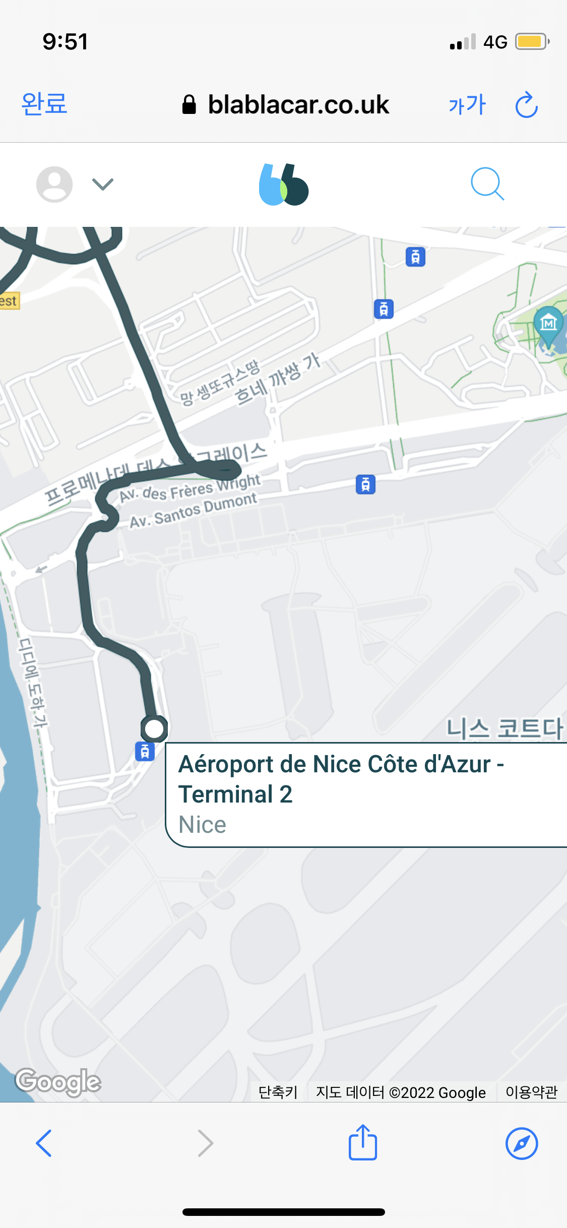 제가 예약했던 업체는 블라블라카(blablacar) 버스였는데요, 해당 버스는 니스공항에서 출발했습니다!