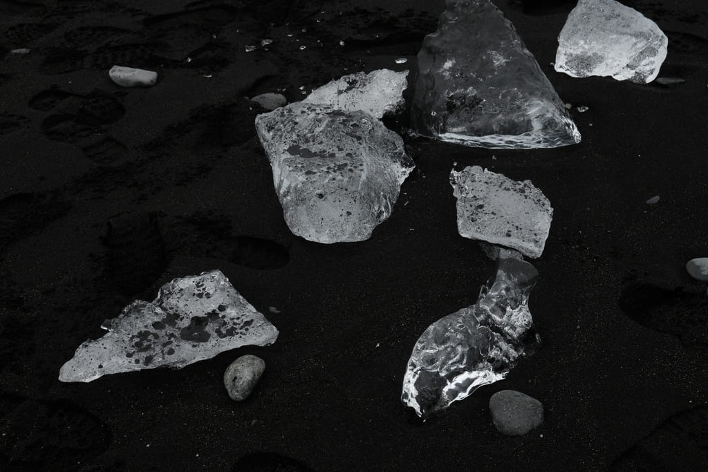검은 모래 해변으로 유명한 다이아몬드 비치는 요쿨살론과 함께 붙어 있었어요. 모래가 정말 검은색이라 신기했습니다. 이 해변에는 물에 떠밀려 온 빙하의 잔해들이 여기저기 있었는데요. 커다란 얼음 덩어리들과 검은 모래를 함께 보고 있자니 내가 정말 아이슬란드에 왔구나 실감하는 순간이었습니다.