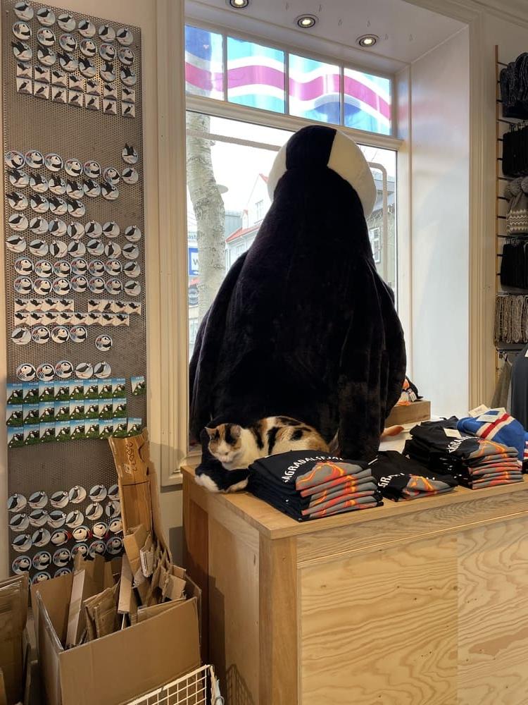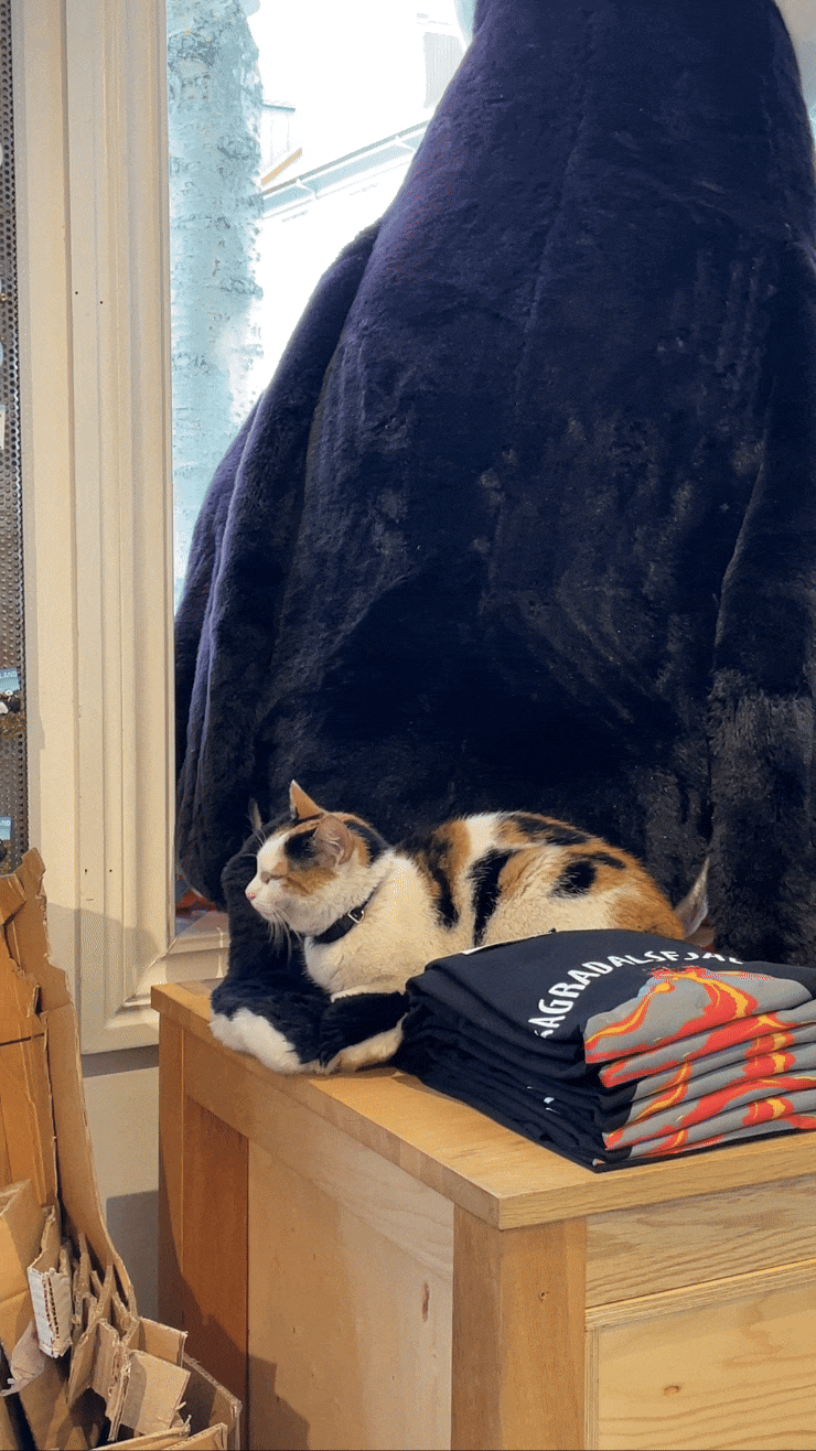 기념품샵들도 구경했는데 이렇게 자연스럽게 한 자리 차지하고 있는 고양이를 볼 수 있습니다.🐈 밑에 더 내려 보시면 아시겠지만 아이슬란드는 고양이가 엄청 많고 사람을 잘 따르는 것 같았어요..! 행복한 고양이들😻
