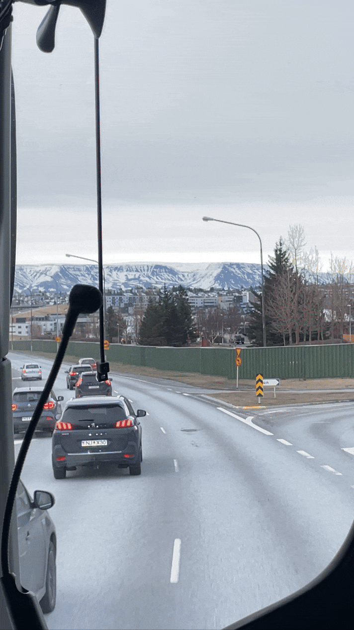 레이캬비크 시내의 여러 정류장을 거쳐 공항까지 가는 공항버스였는데요. 제가 묵고 있던 숙소 주변에 정류장을 찾아 시간을 미리 예약해 두고 타는 시스템이었습니다. 시내로 올 때도, 다시 공항으로 갈 때도 가이드투아이슬란드 덕분에 편하고 쾌적하게 이동했어요!
