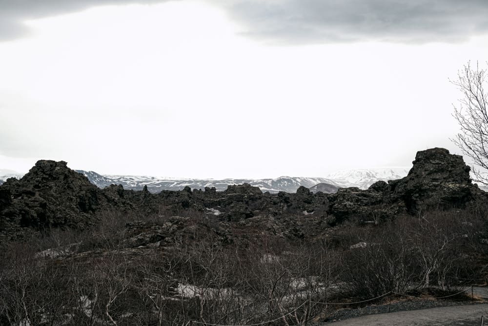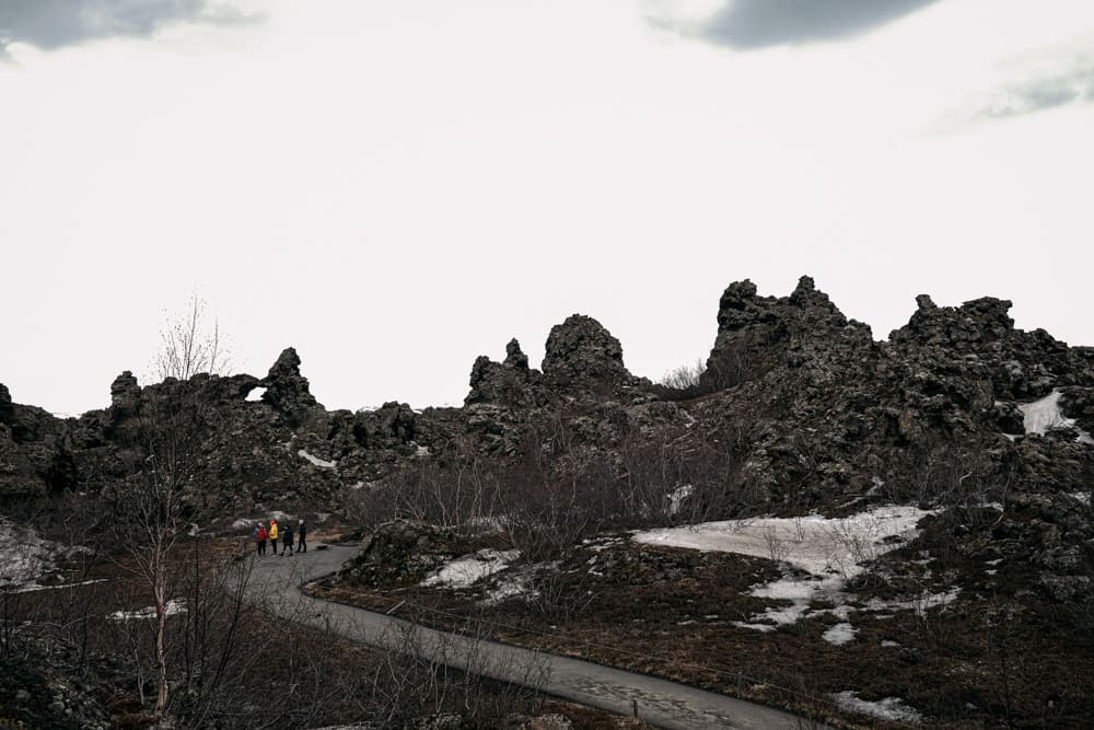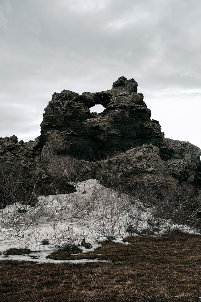 딤무보르기르는 약 2,300년 전 화산 폭발로 형성된 용암지대입니다. 다양한 모양의 용암 기둥과 동굴이 많은데, 그 모습이 성채나 요새를 연상시켜서 '어두운 성채'라는 뜻의 Dimmuborgir: 딤무보르기르라는 이름이 지어졌다고 합니다.