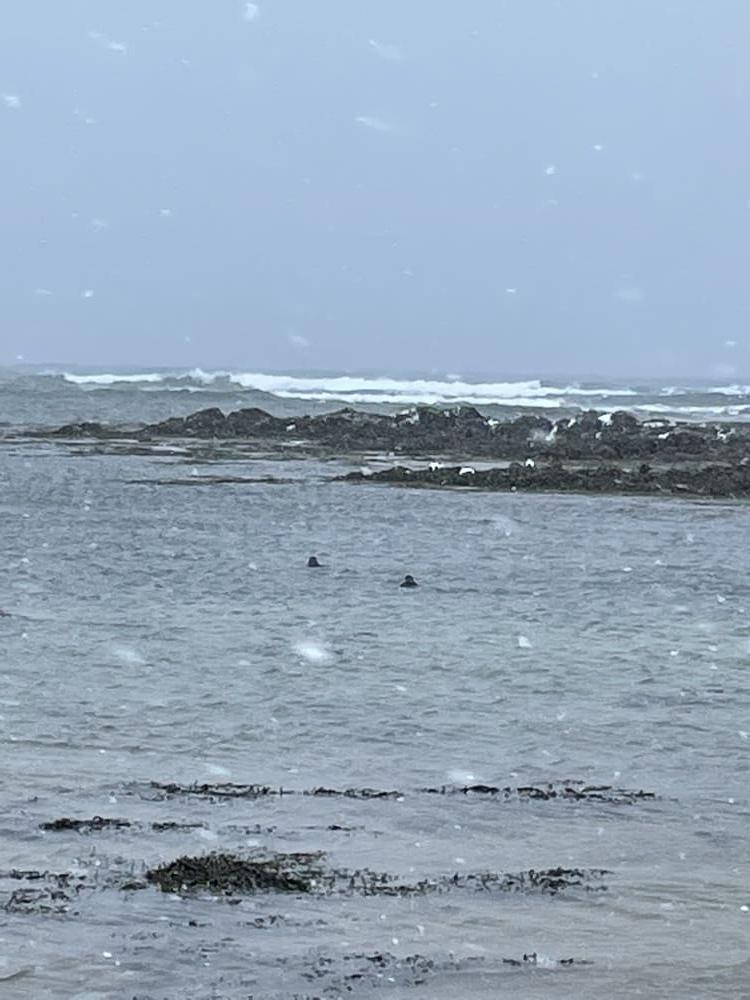 이후에는 이트리 툰가(Ytri Tunga)를 방문했어요. 여기는 물개 출몰 지역으로 유명한데요. 바다에 불쑥 올라온 머리 두 개, 잘은 안 보이지만 물개라고 합니다! 아쉽게도 가까이서 볼 수는 없었어요. 꼭 물개가 아니더라도 눈 쌓인 돌들이 너무나 매력적인 풍경을 보여주던 곳. 이 해변까지 가는 길에 거대한 고래뼈도 보았었는데, 아쉽게도 사진을 안 남겨놨네요.