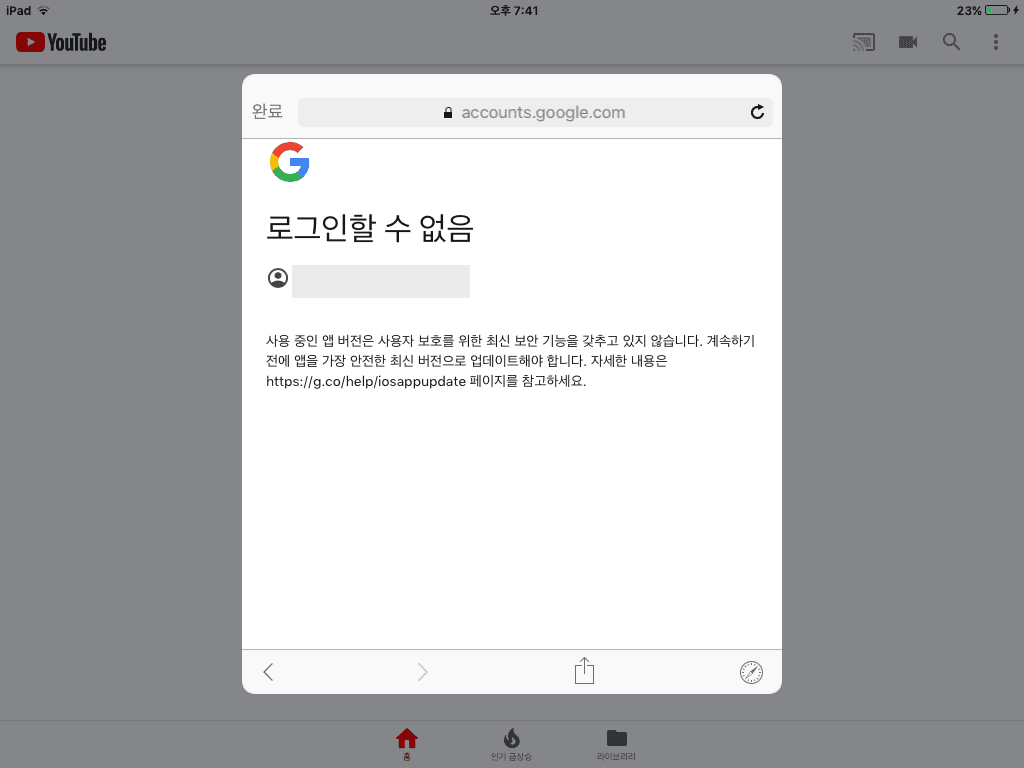 유튜브 또한 되는 줄 알았으나 보기 좋게 로그인 실패...