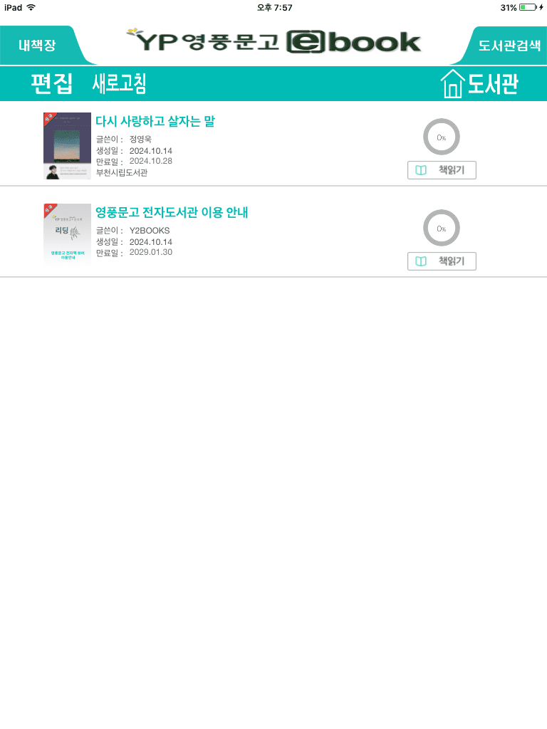 영풍문고는 책 다운로드까지는 되지만 막상 책을 읽으려고 하면 오류가 뜨면서 실행되질 않았습니다.