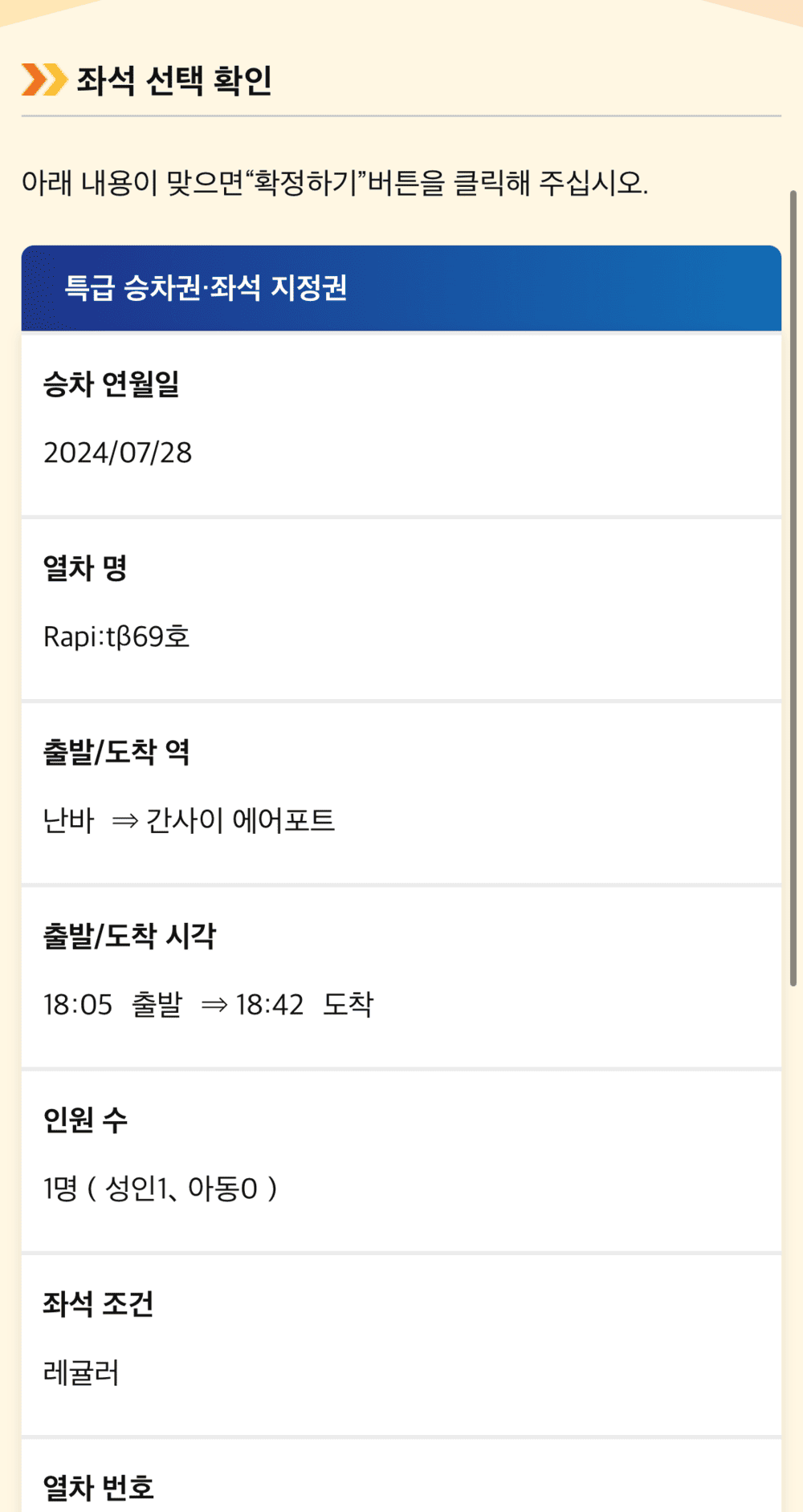 - 난카이 라피트 좌석 예약 방법 및 예약 변경 후기