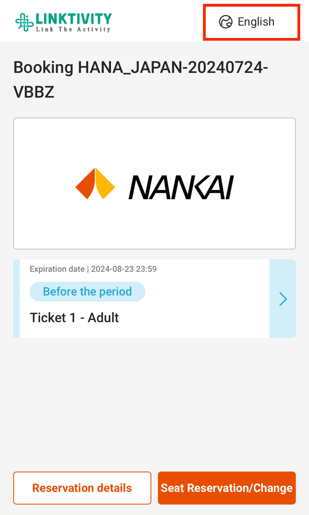난카이 라피트 온라인 티켓 구매 후 탑승 시에는 주의할 점이 있는데요, 바로 구매 당일은 탑승이 불가하다는 점이에요. 구매해 놓고 시간, 좌석 예약은 천천히 해도 되니 일단 미리 사두시는 편이 좋겠죠?