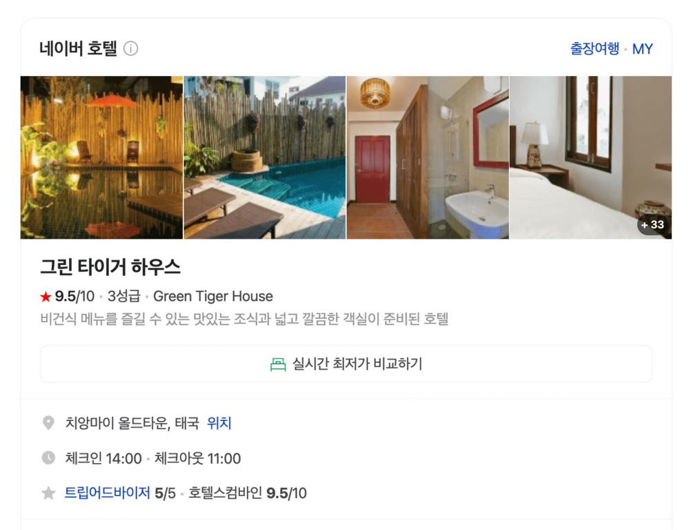 치앙마이 여행 후기를 찾아보던 중 눈에 딱 들어온 숙소가 '그린 타이거 하우스(Green Tiger House)였습니다. 이 숙소는 조식 퀄리티가 엄청 좋기로 유명한데요. 오죽하면 '그린 타이거 하우스'를 검색하면 '그린 타이거 하우스 조식'이 연관 검색어로 뜰 정도랍니다.