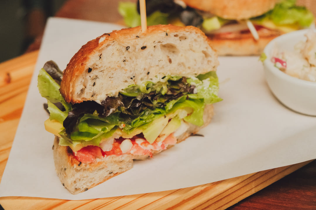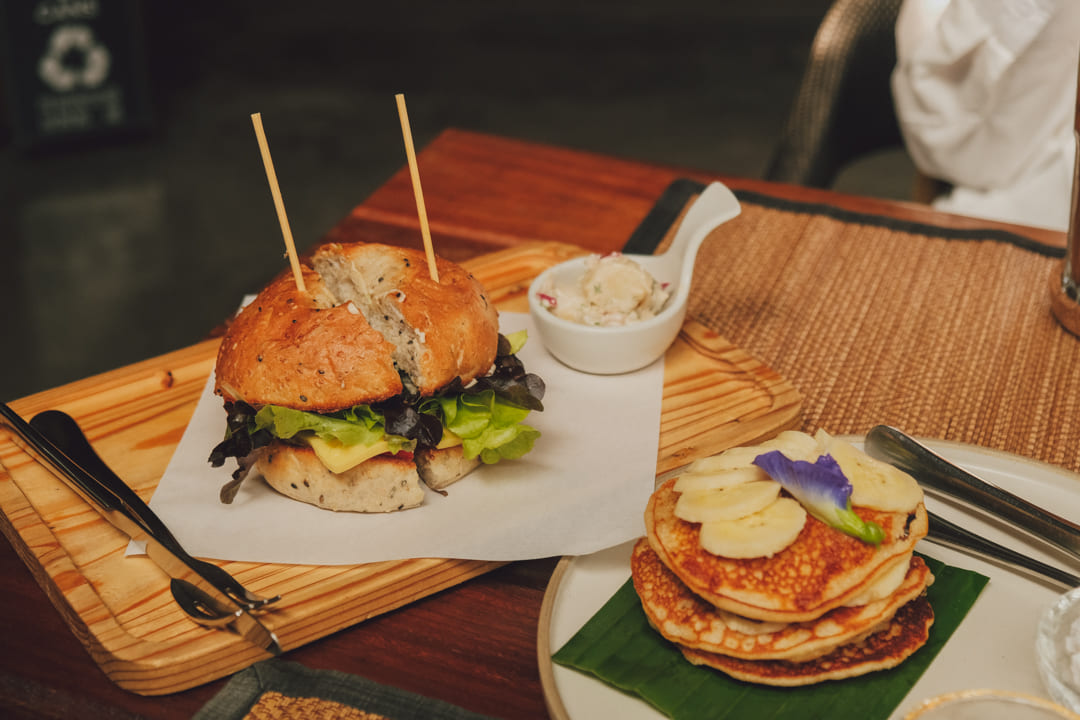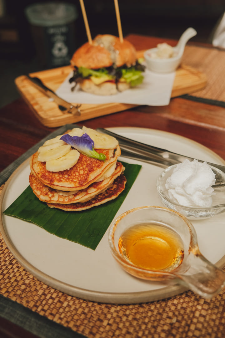 둘째 날은 과일 플레이트에서 망고만 달라고 요청했더니 망고만 주셨어요. 그리고 베이글하고 바나나 팬케이크를 시켰는데, 베이글 진짜 진짜 꼭 추천해요. 사실 추천한다는 후기 보고 갔지만 비건인데 얼마나 맛있겠어라는 생각에 저 혼자라면 안 시켰을 것 같은 메뉴거든요. 그런데 친구가 먹고 싶다 해서 주문했고, 3일 동안 먹은 메뉴들 중 이게 제일 맛있었어요! 추천 1순위.