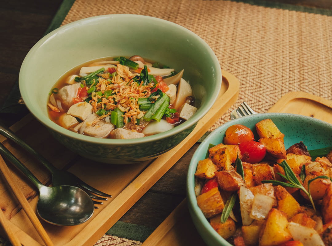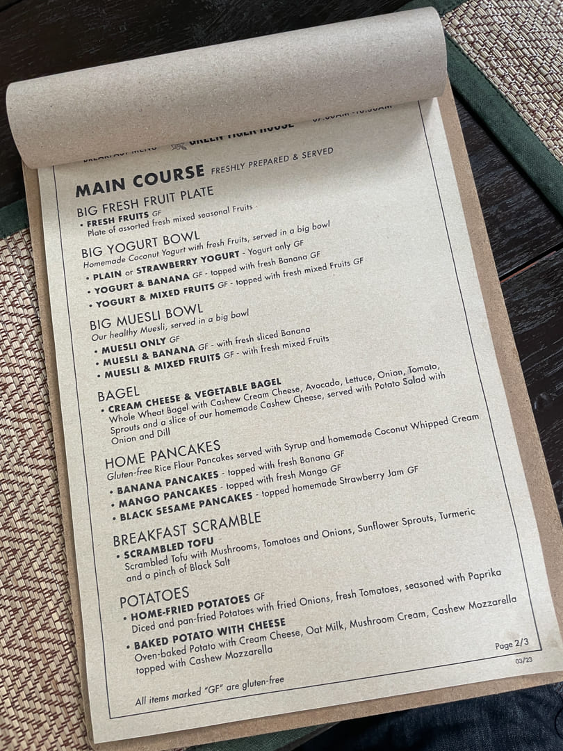 조식은 숙소 1층에서 먹을 수 있는데 여기는 오후에는 실제 비건 레스토랑으로 운영되는 곳이라고 합니다. 투숙객들에게는 오전 7시부터 10시 30분까지 먹고 싶은 메뉴를 개수 무한으로 즐길 수 있었습니다. 조식을 먹을 때는 룸키를 보여드려야 해요!