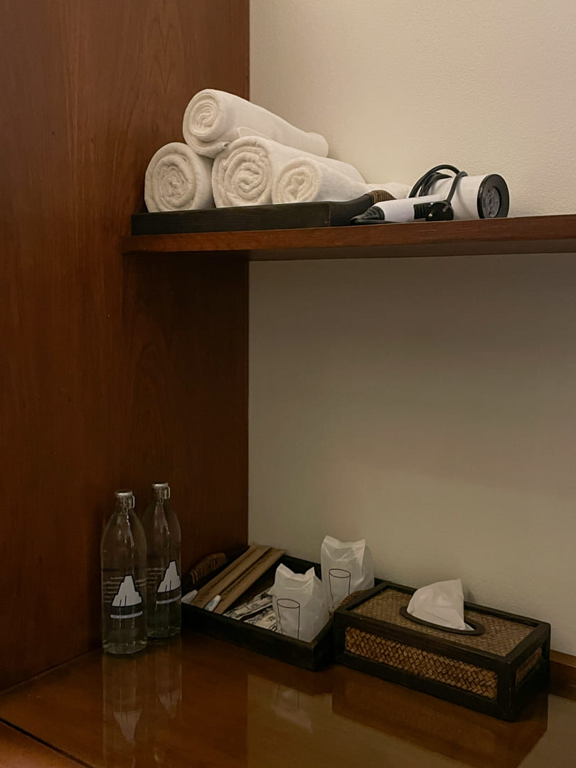 물과 타월, 헤어드라이기는 기본 제공되었고요, 타월이 더 필요하면 카운터에 문의하면 가져다주셨어요.