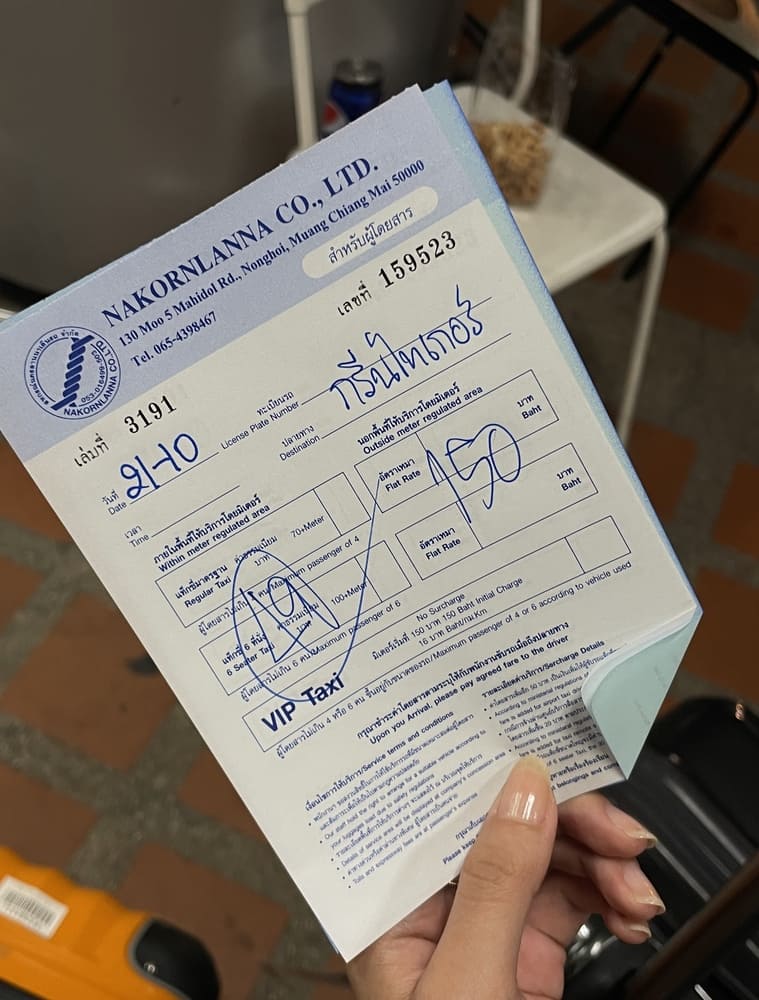 그린 타이거 하우스는 올드타운의 창 푸악 게이트 근처에 있습니다. 공항에서 그린 타이거 하우스까지는 약 10분 정도 소요되었는데요. 그랩이나 볼트로 직접 택시를 잡아서 타고 가시는 편이 훨씬 저렴하긴 하지만 저는 태국, 그리고 치앙마이가 처음이기도 했고 늦은 시간에 도착했기 때문에 마음 편하게 가자 해서 150밧 정찰제 택시를 이용했어요. 공항에서는 사람들이 가는 방향으로 그냥 따라가시면 됩니다!