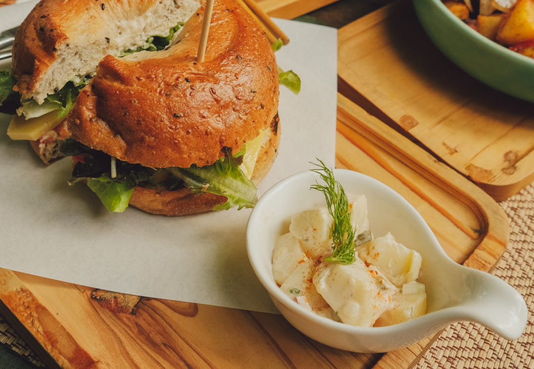 옆에 같이 나오는 저 하얀 것(?)도 너무 맛있었어요! 감자였던 것 같은데 베이글이랑 잘 어울리는 느낌.