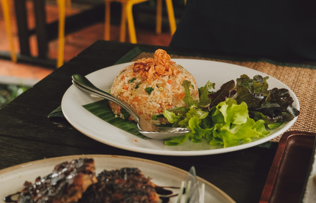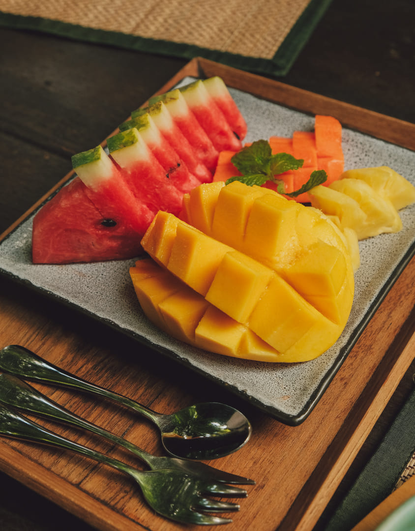 :: 첫째 날: BIG FRESH FRUIT PLATE, MUSHROOM STEAK, GARLIC FRIED RICE
