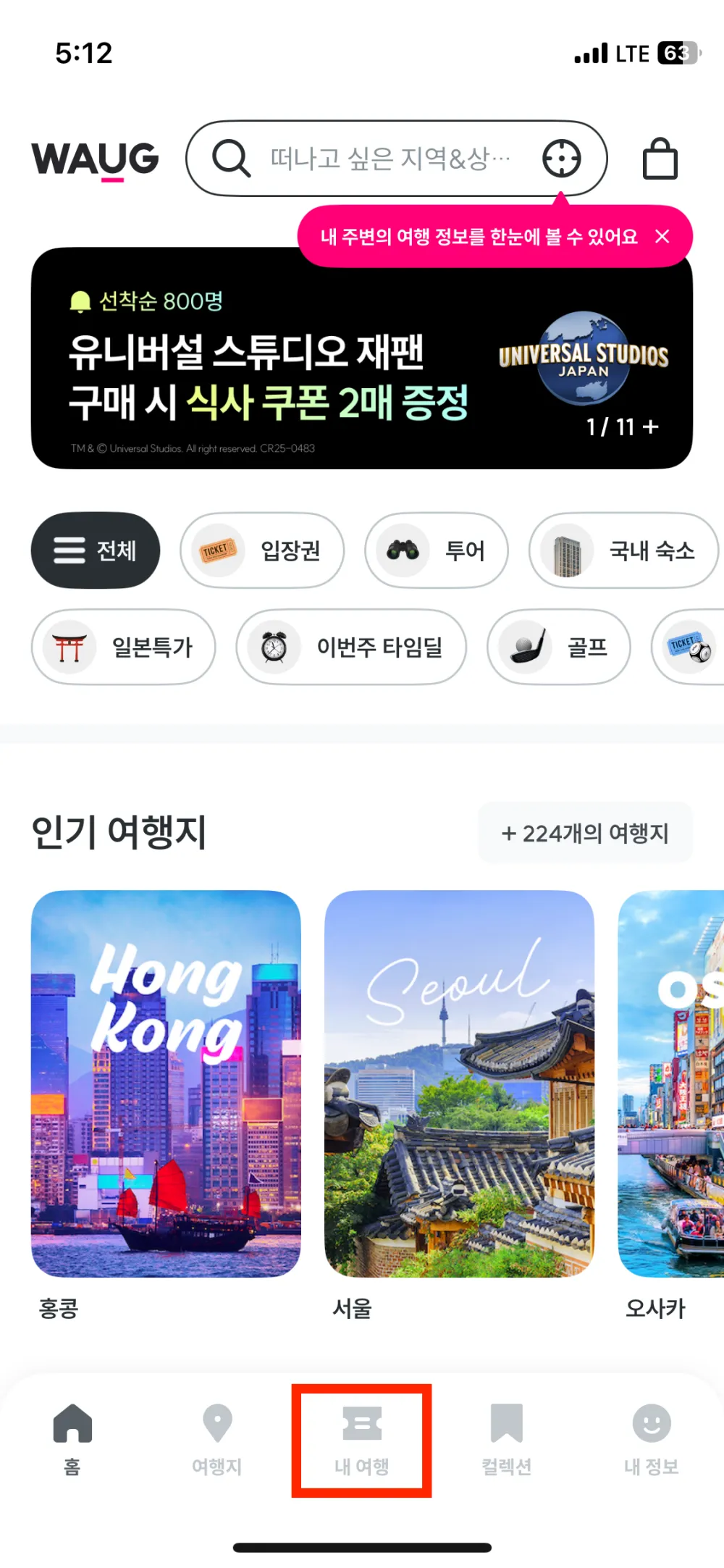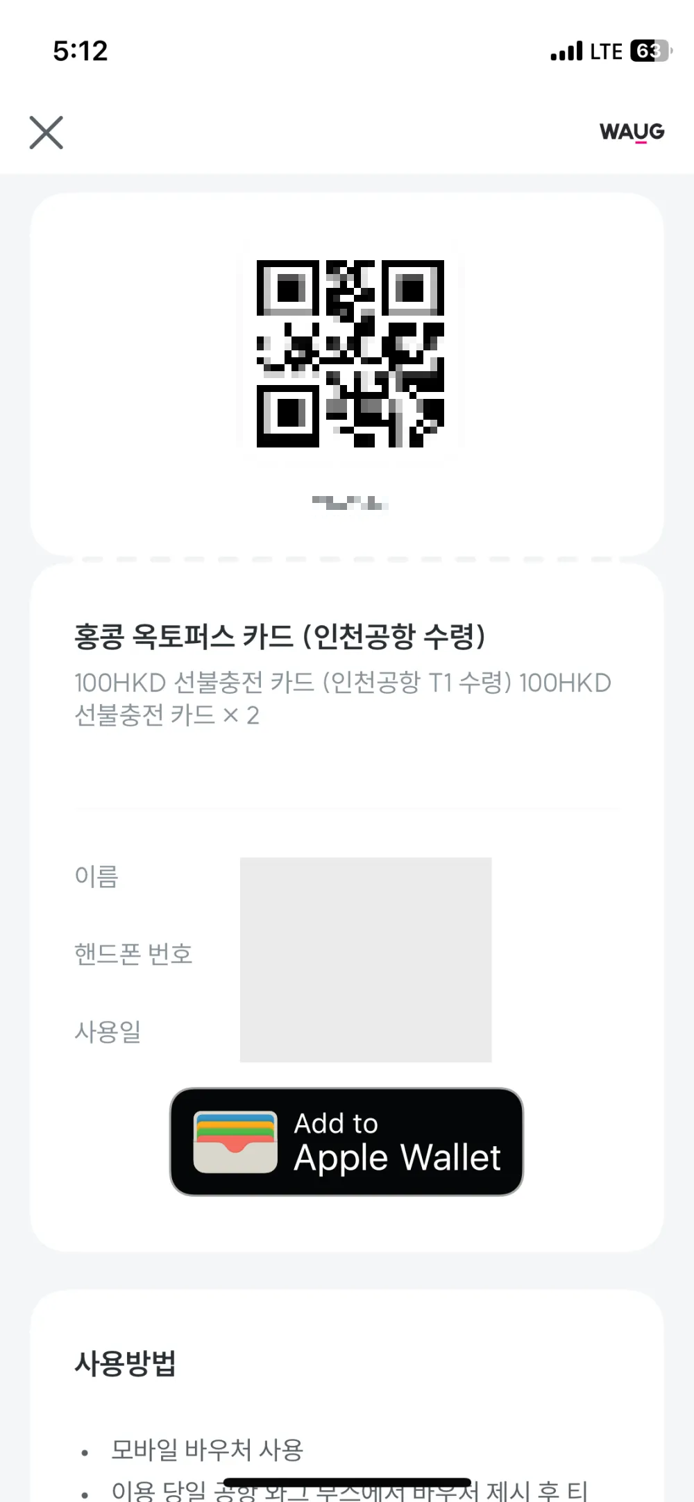 구매 후 수령 방법도 간단합니다. 저는 어플로 구매했는데요. 와그 어플에 접속해서 [내 여행 > 바우처 보기 > QR코드 저장]의 과정을 통해 QR코드를 저장해 두세요.