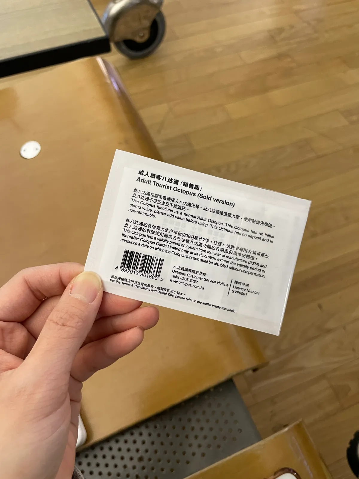 이제 이 카드를 가지고 홍콩 현지 공항의 편의점이나 기타 옥토퍼스 카드 충전소에 가서 충전하시면 바로 이용하실 수 있습니다.