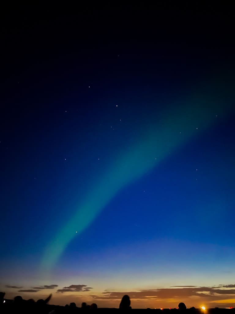 사알짝 실망했지만, 포기하지 않고 휴대폰 사진 야간모드, 혹은 카메라 장노출로 해서 촬영해 보니 희미하게나마 초록빛 오로라가 보였어요.