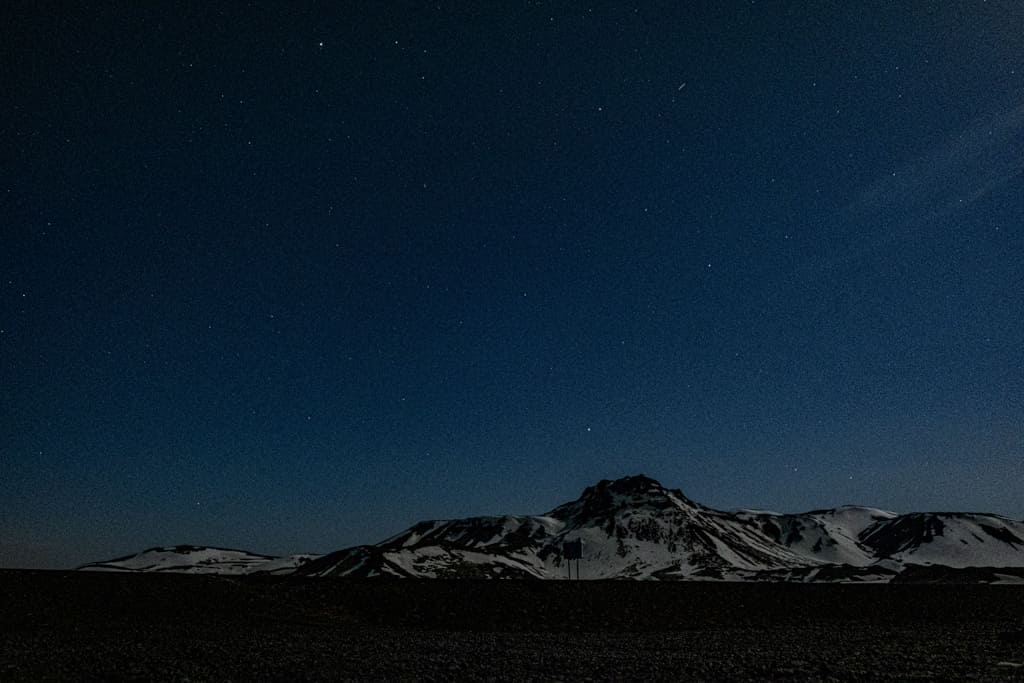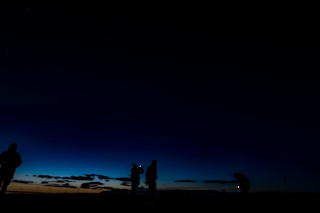 정말 칠흑같이 어두운 도로를 한참을 달리더니 넓은 평지 같은 곳에서 내렸어요. 처음에는 너무 깜깜해서 무서웠는데, 눈이 적응이 되니 하늘에 별들도 보이더라고요! 가이드 분이 오로라가 있는 곳을 알려주셨는데, 아쉽지만 오로라가 실제 눈으로는 안 보였습니다. (살짝 실망..?)