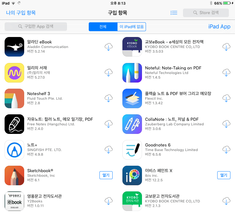 아이패드 미니로 다운로드를 시도한 어플들은 스마트폰으로 활용하기엔 화면이 너무 작아서 불편했던 것이나, PC로 활용하기엔 너무 번거로워서 간편하게 보고 싶을 때 사용할 만한 것들 위주로 찾아보았습니다. 주로 전자책, 영상 시청, 필기, 스케치 등 활용할 법한 것들 위주로 시도해 보았는데요. 제가 쓰고 싶어서 직접 시도해 본 결과들을 공유드립니다.