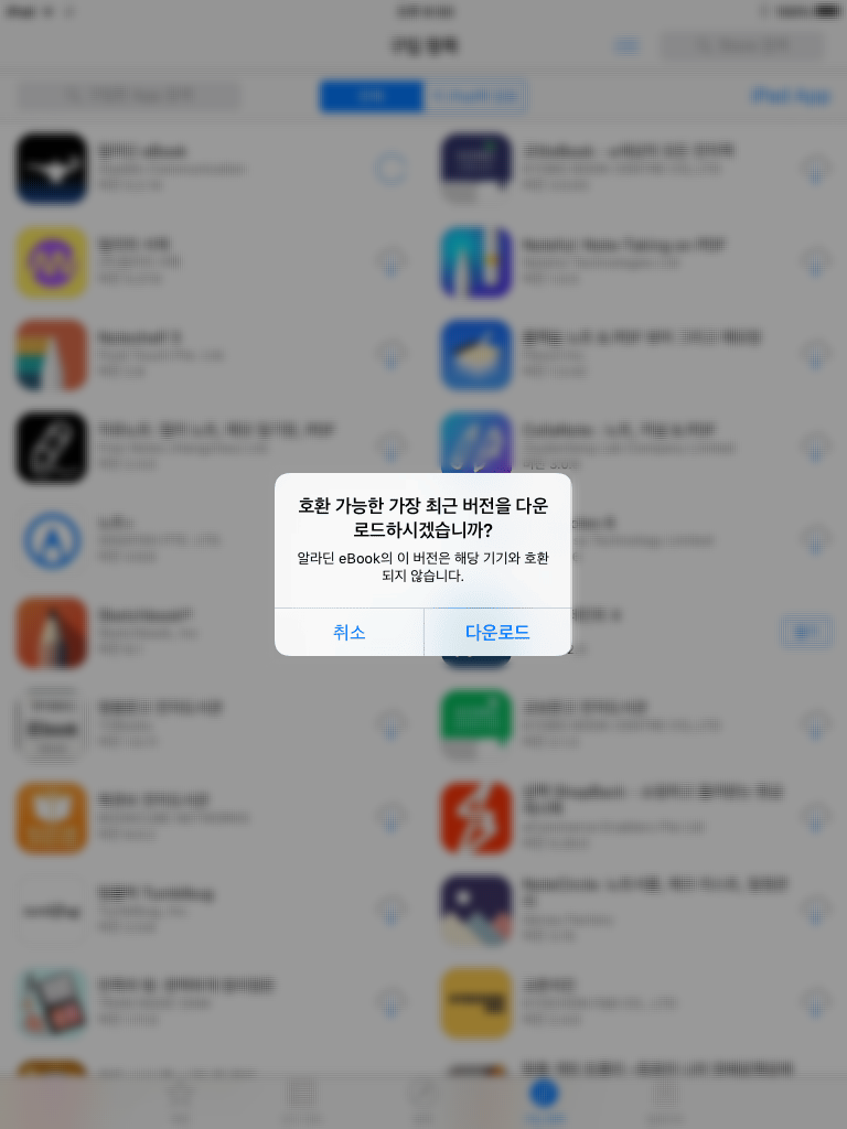 그러면 '호환 가능한 가장 최근 버전을 다운로드하시겠습니까?'라는 안내 문구가 나오고, 다운로드 버튼을 누르면 이 기기에서 사용 가능한 버전으로 어플이 설치됩니다.