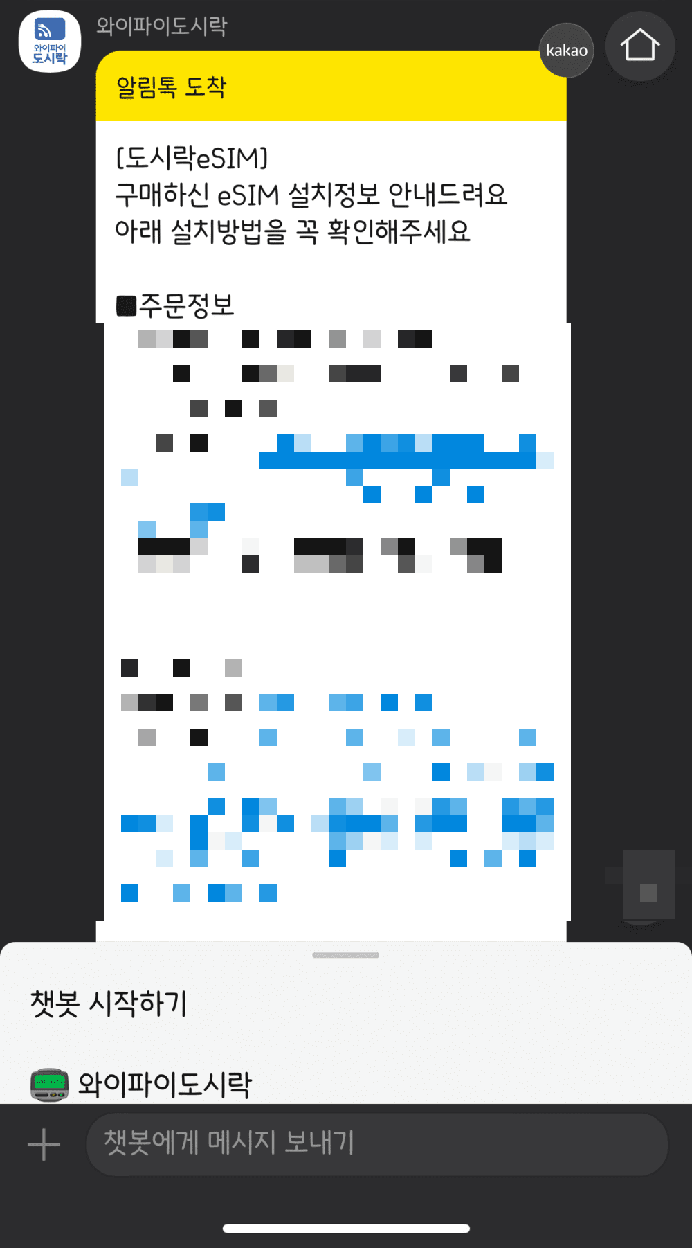 먼저 구매하고 나면 조금 있다가 카카오톡 메시지가 바로 옵니다.